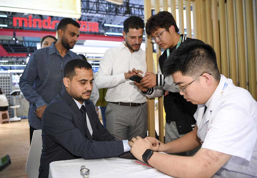 YINCHUAN, Oct. 27 (Xinhua) -- During a remote consultation, Ma Yan, a traditional Chinese medicine (TCM) expert from northwest China's Ningxia Hui Autonomous Region currently working in Benin, West Africa, treated a local patient suffering from peripheral facial paralysis via the Sino-Benin TCM telemedicine platform.