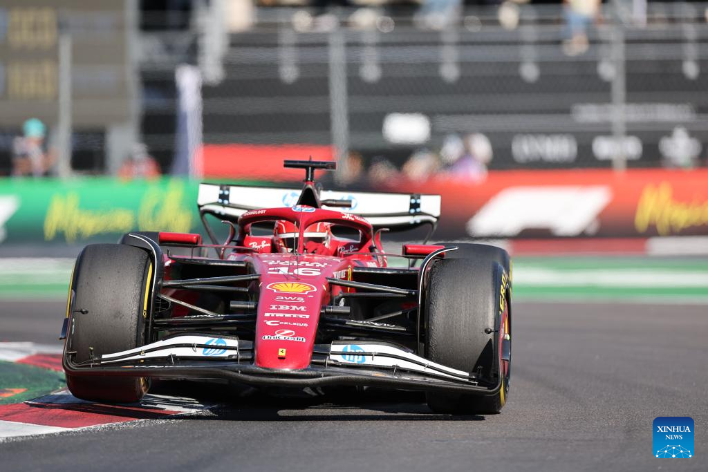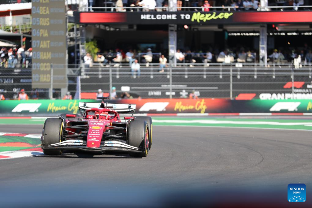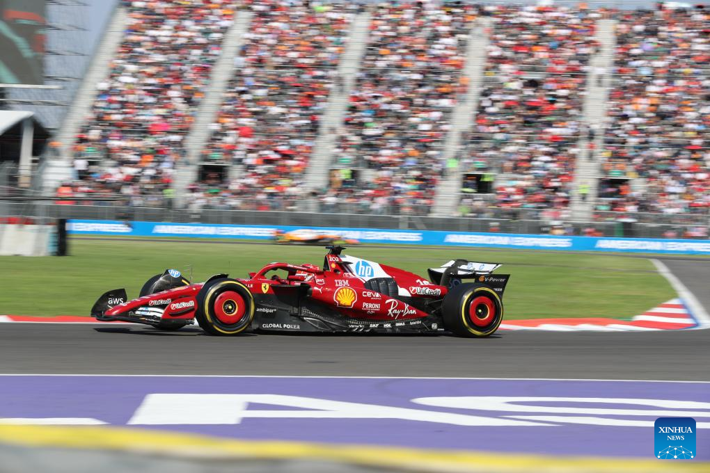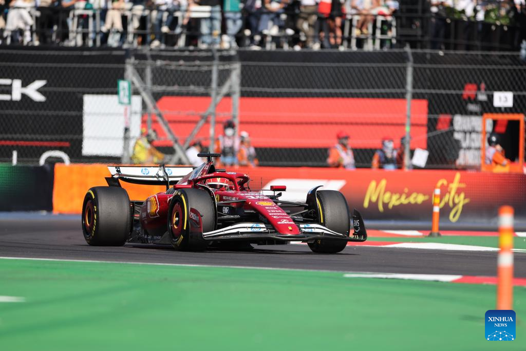 Ferrari's Monegasque driver Charles Leclerc competes during the Formula One Mexico Grand Prix at the Hermanos Rodriguez Circuit in Mexico City, Mexico, Oct. 26, 2025. (Xinhua/Li Mengxin)