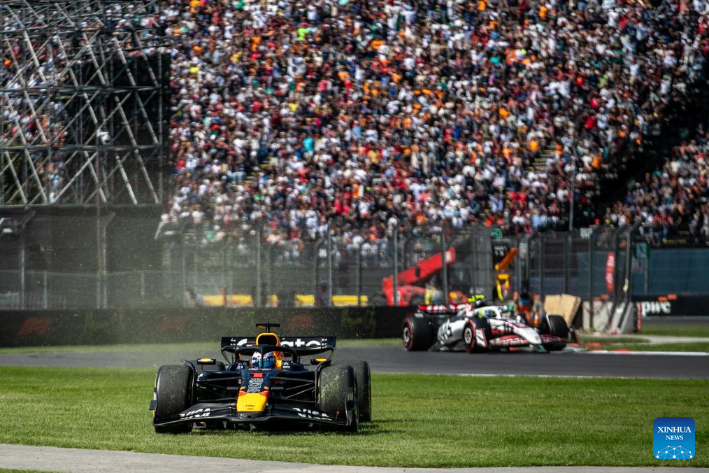 Red Bull's Dutch driver Max Verstappen races off the track during the Formula One Mexico Grand Prix at the Hermanos Rodriguez Circuit in Mexico City, Mexico, Oct. 26, 2025. (Xinhua/Li Mengxin)