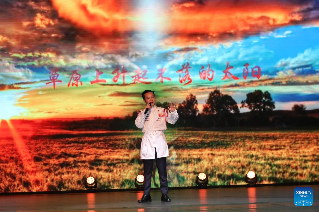 A contestant sings a Chinese song at the final round of the fourth "Laotians Sing Chinese Songs" competition held in Vientiane, Laos, Oct. 24, 2025. The final round of the fourth "Laotians Sing Chinese Songs" competition took place in the Lao capital Vientiane on Friday, attracting nearly 1,000 attendees from both China and Laos. (Photo by Wang Yuping/Xinhua)