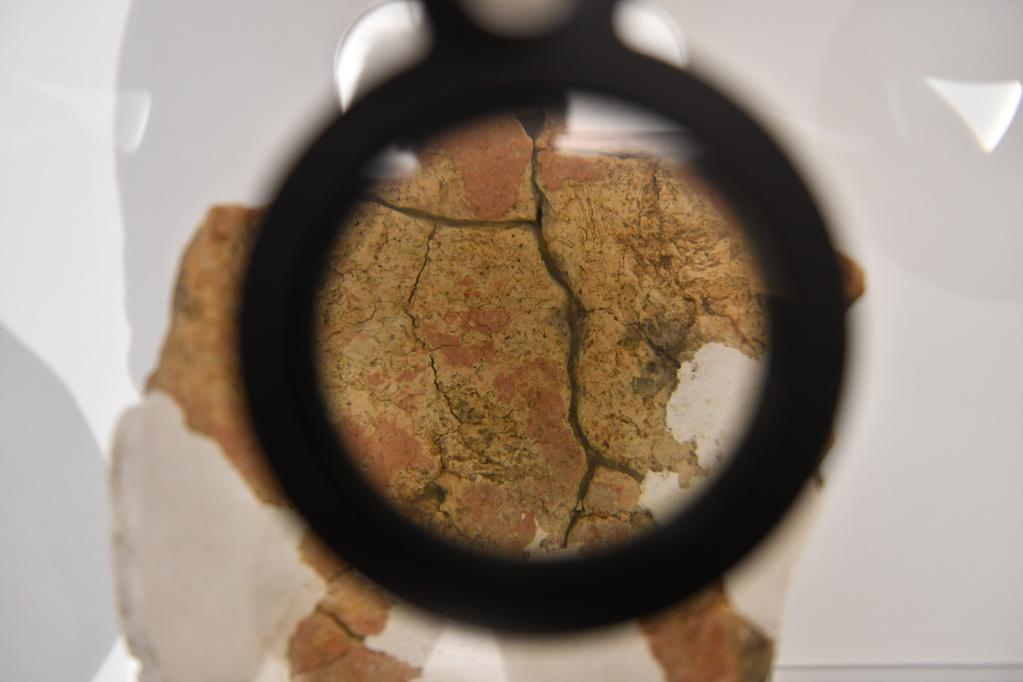 這是上山考古遺址公園展出的摻雜稻殼的夾炭陶片(5月12日攝)。新華社記者 黃宗治 攝