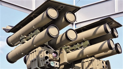 ????“短號”系列反坦克導彈系統性能先進,導彈飛行速度超過以往所有老式型號。這款導彈采用激光制導,射程達10千米,可對付直升機和小型無人機。另外,該導彈系統還可使用破片殺傷彈頭和溫壓彈頭,破片殺傷彈頭對打擊輕裝甲目標和步兵最有效,溫壓彈頭適用于摧毀城市中的防御工事,指揮員可根據不同打擊目標選用彈頭。(柳玉鵬)