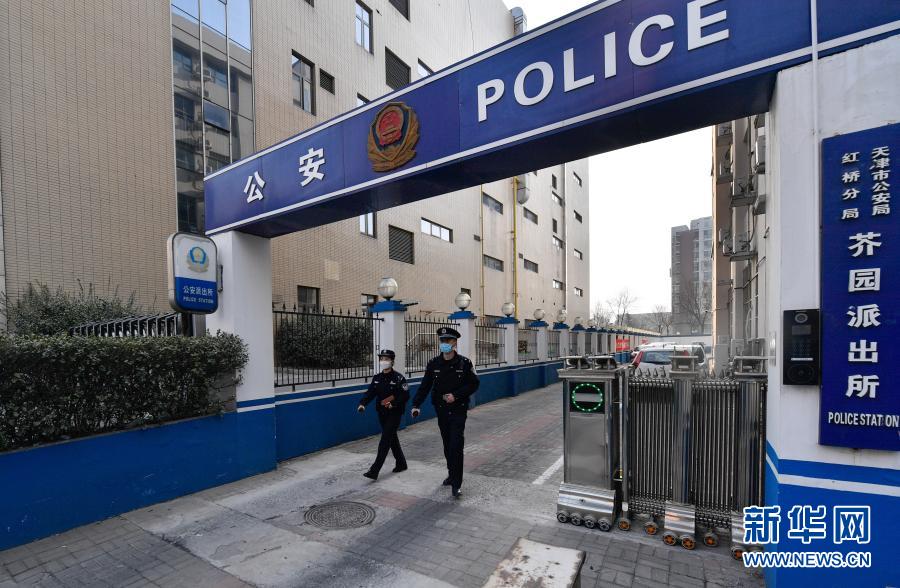 2月11日,在天津市紅橋區芥園派出所,楊曉惠(左)與民警高瑞鑫(右)出警巡邏。新華社發(孫凡越攝)