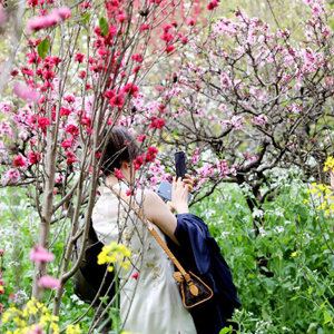 3月26日,“春暖浦東 十里桃花”2021上海桃花節開幕儀式在浦東南匯惠南鎮桃花村舉行,兩名當地旗袍協會的姑娘在桃花村賞花。