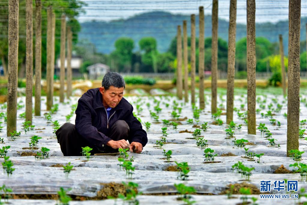 4月5日,福建省南平市建陽區莒口鎮馬伏村村民在田間育苗。