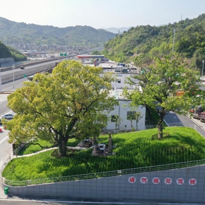 杭州第二繞城高速西復線次塢服務區有3棵樹齡在100年以上的古樹。服務區在建設過程中,將古樹保護起來,現已成為一道特色景觀。新華社發(郭斌 攝)