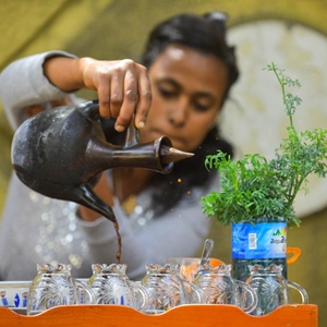 埃塞俄比亞有“咖啡的故鄉(xiāng)”之稱,是世界上重要的咖啡生產國。許多當地咖啡愛好者喜歡和親友聚在一起,花上數個小時品嘗咖啡,邊喝邊聊。近來,越來越多的年輕女性看到了咖啡行業(yè)的商機,她們在亞的斯亞貝巴等大城市的街頭開起咖啡攤,為顧客送上香醇、平價的咖啡。新華社發(fā)(邁克爾·特韋爾德攝)