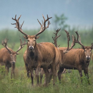 位于湖北省天鵝洲長江故道邊的石首麋鹿國家級自然保護區,成群的麋鹿在這里棲息生長。經過保護人員的多年努力,麋鹿種群發展迅速,已由1993年、1994年、2002年分三次從北京南海子麋鹿苑引進的94頭發展到如今的2000頭左右,并形成核心區、江南三合垸、小河楊波坦及湖南洞庭湖4個亞種群,全部自然放養,恢復了野生習性,自然保護區已成麋鹿的天堂。