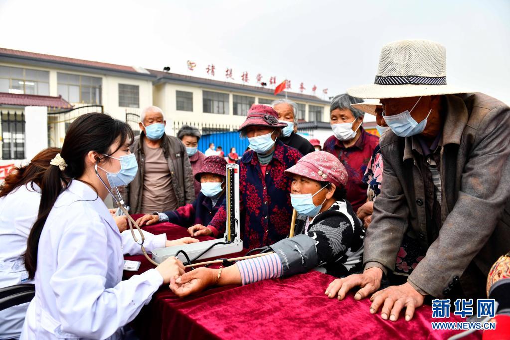 5月21日,在棗莊市臺兒莊區澗頭集鎮褚提樓村,“學黨史惠民”醫療小分隊為群眾開展送醫、送藥服務。
