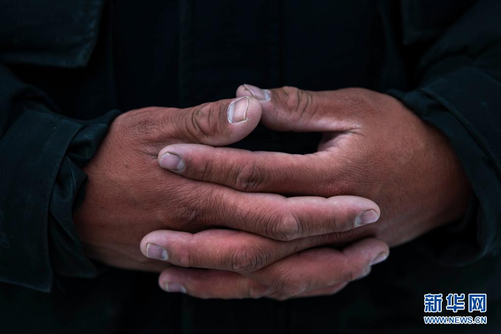 放牧、登山,多年的高原戶外生活在別克米爾扎·圖爾達力的手上留下風霜的印記(5月15日攝)。新華社記者 胡虎虎 攝