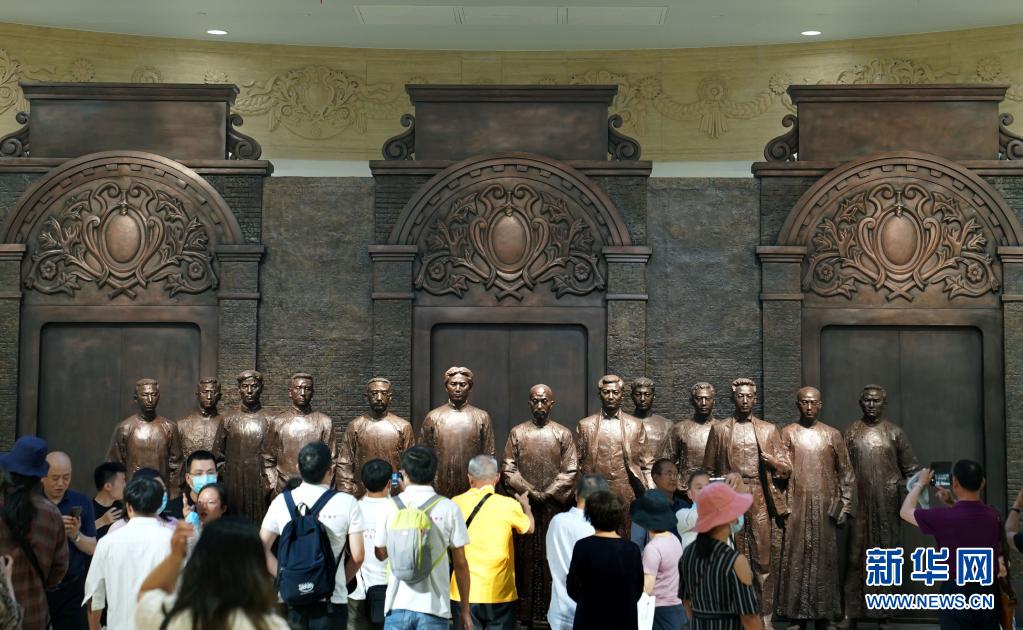 6月6日,觀眾在中共一大代表群體銅像前參觀。新華社記者 劉穎 攝