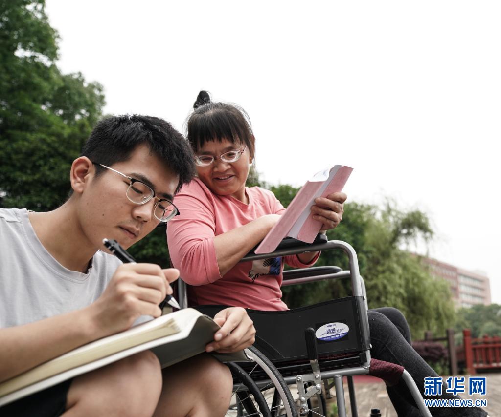 6月2日,趙建軍和母親一起在校園內(nèi)看書。新華社記者胡晨歡攝