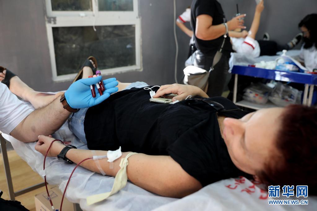 6月14日,志愿者在以色列中部城市莫迪因獻血。新華社發(吉爾·科恩·馬根攝)