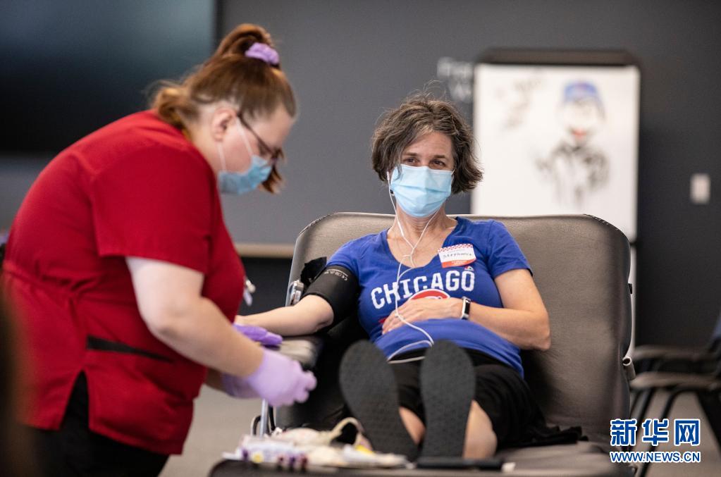 這是6月14日在美國芝加哥的大芝加哥地區(qū)紅十字會(huì)一獻(xiàn)血站內(nèi)拍攝的獻(xiàn)血志愿者。新華社發(fā)(喬爾·萊納攝)