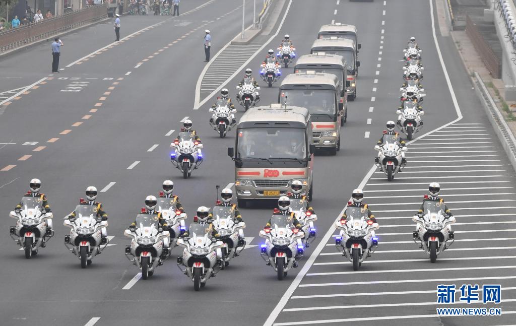 6月29日,慶祝中國共產黨成立100周年“七一勛章”頒授儀式在北京人民大會堂金色大廳隆重舉行。這是“七一勛章”獲得者集體乘坐禮賓車,由國賓護衛隊護衛前往人民大會堂。新華社記者 翟健嵐 攝