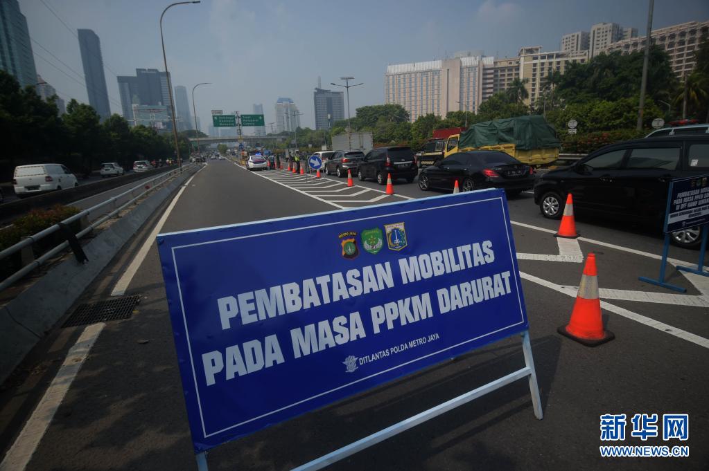 7月5日,汽車排隊(duì)經(jīng)過印度尼西亞雅加達(dá)一處檢查站接受檢查。