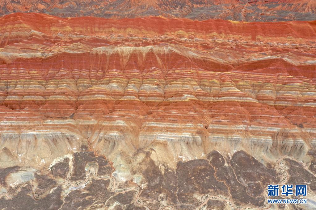 張掖世界地質(zhì)公園的一處彩色丘陵地貌景觀(7月14日攝,無人機照片)。