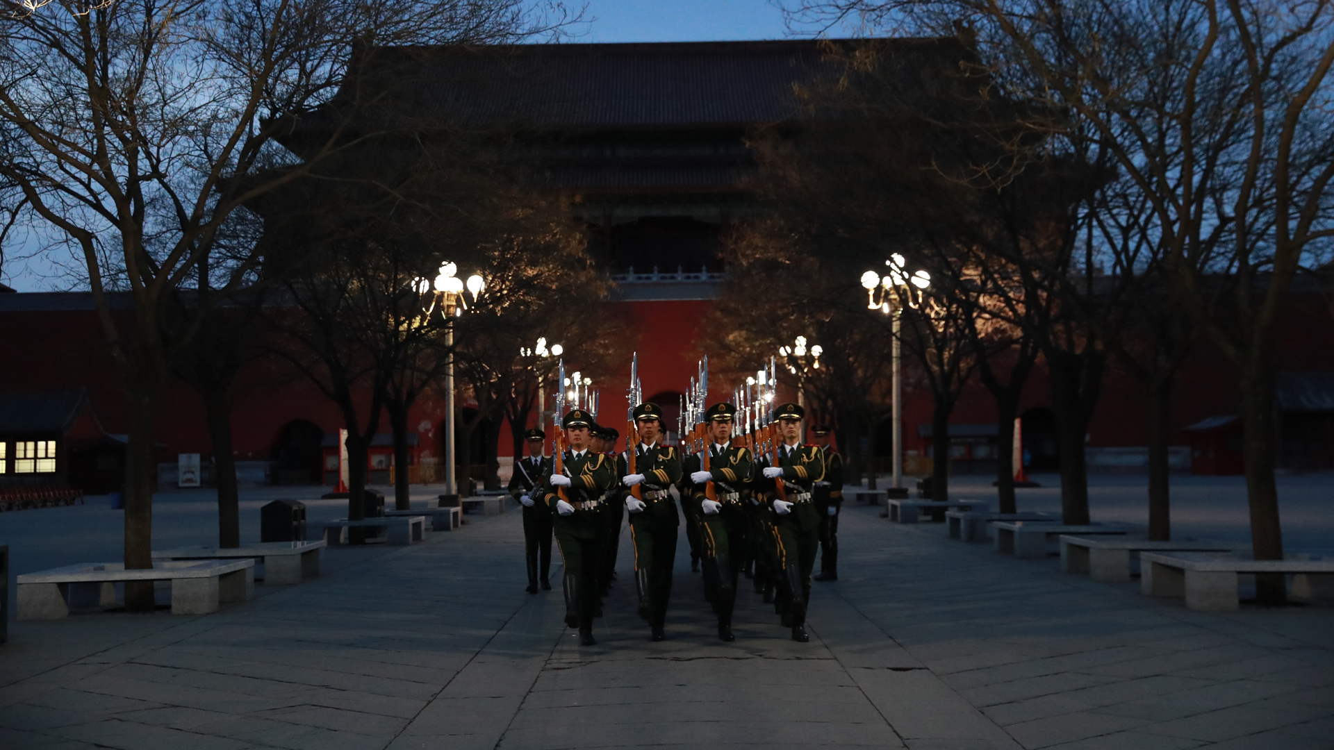 2017年3月5日,第十二屆全國(guó)人民代表大會(huì)第五次會(huì)議在人民大會(huì)堂開(kāi)幕。凌晨4點(diǎn)的長(zhǎng)安街,夜色還未褪去,位于故宮午門(mén)前一側(cè)的一座武警營(yíng)區(qū)內(nèi),卻已是燈火通明。一群武警戰(zhàn)士穿起禮兵服、握緊鋼槍開(kāi)始訓(xùn)練。晨曦微露,從金水橋到國(guó)旗桿下,138步、2分07秒、365天,無(wú)論雨雪風(fēng)霜、嚴(yán)寒酷暑,他們都守護(hù)著五星紅旗冉冉升起。這支部隊(duì)就是武警北京總隊(duì)天安門(mén)支隊(duì)國(guó)旗護(hù)衛(wèi)隊(duì)。