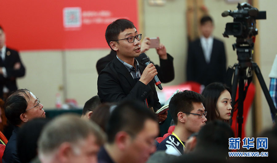 ??? 10月20日,十九大新聞中心舉辦集體采訪活動,主題為“文化發(fā)展開創(chuàng)新局面”。圖為光明日報融媒體記者提問。新華網(wǎng) 翟子赫攝