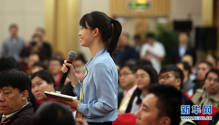 ???? 10月21日,十九大新聞中心舉辦記者招待會,邀請中共中央統(tǒng)戰(zhàn)部常務(wù)副部長張裔炯、副部長冉萬祥,中共中央對外聯(lián)絡(luò)部副部長郭業(yè)洲介紹黨的統(tǒng)一戰(zhàn)線工作和黨的對外交往情況,并回答記者提問。圖為中央人民廣播電臺記者提問。新華網(wǎng) 郝廣鵬攝