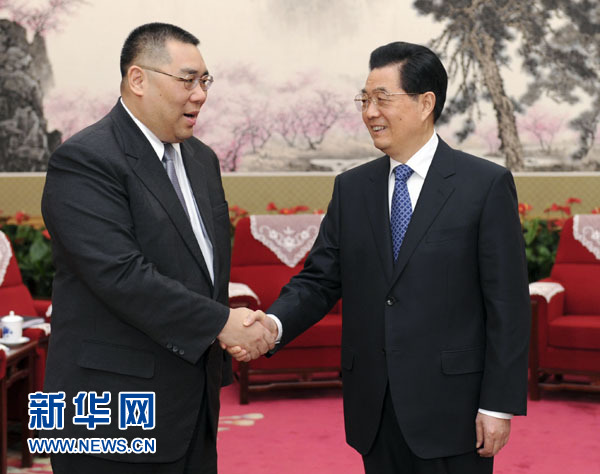 ??? 新華網快訊:國家主席胡錦濤21日下午在中南海會見了來京述職的澳門特別行政區行政長官崔世安。