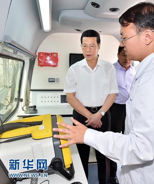 ??? 6月5日,中共中央政治局常委、國(guó)務(wù)院副總理張高麗到中國(guó)環(huán)境科學(xué)研究院和中國(guó)環(huán)境監(jiān)測(cè)總站調(diào)研。這是張高麗在水質(zhì)應(yīng)急監(jiān)測(cè)車(chē)上了解水質(zhì)監(jiān)測(cè)預(yù)警工作情況。新華社記者 李濤 攝