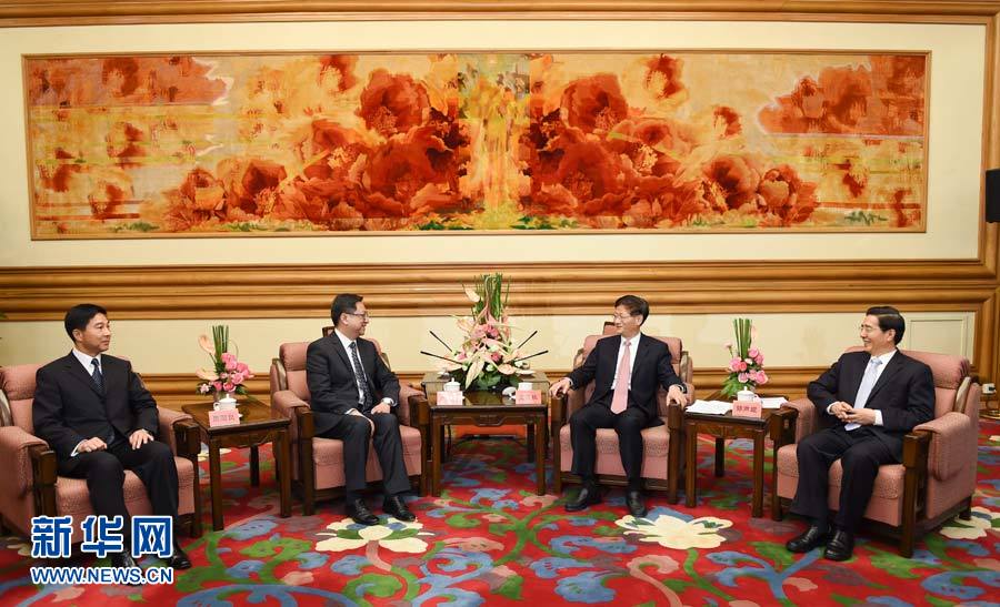 ??? 5月19日,中共中央政治局委員、中央政法委書記孟建柱在北京中南海會見香港特別行政區警務處處長盧偉聰。 新華社記者謝環馳攝