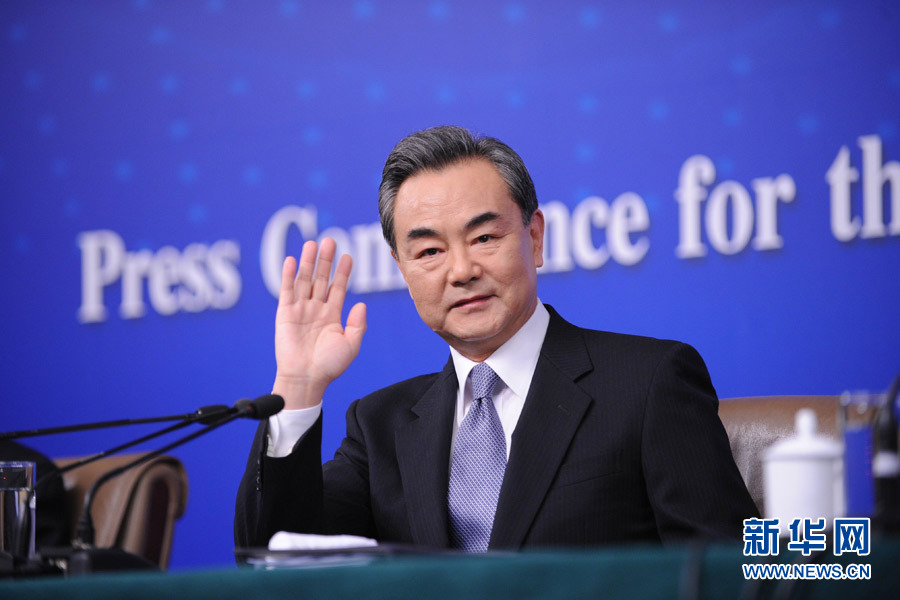 ?十二屆全國人大三次會議新聞中心于3月8日(星期日)10時在梅地亞中心多功能廳舉行記者會,邀請外交部部長王毅就中國的外交政策和對外關系相關問題回答中外記者提問。圖為外交部部長王毅向記者揮手致意。新華網/中國政府網 翟子赫 攝
