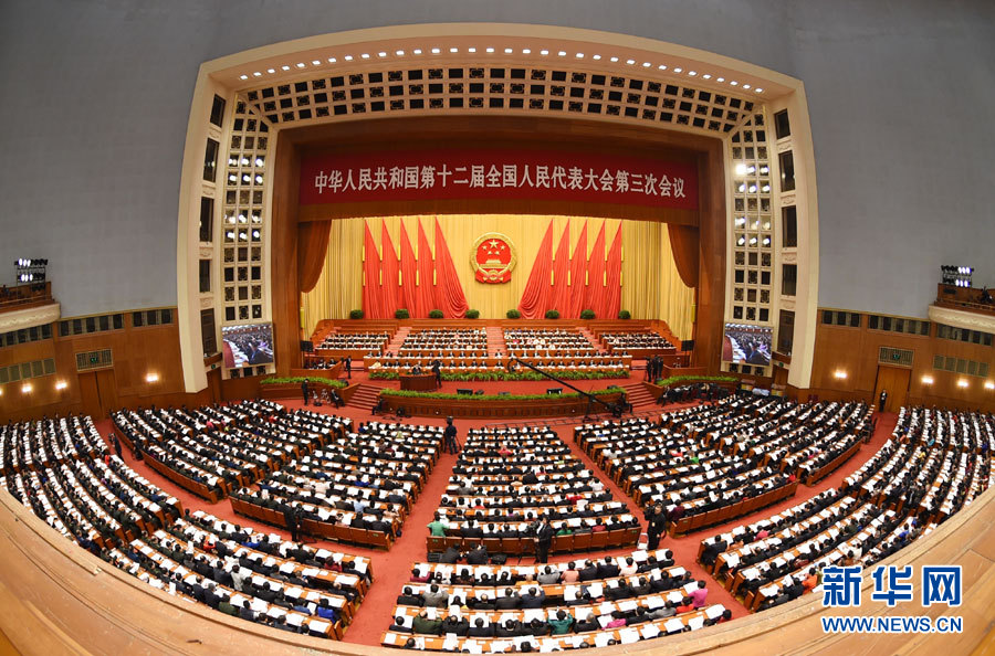 3月12日,十二屆全國人大三次會議在北京人民大會堂舉行第三次全體會議。 新華社記者 高潔 攝