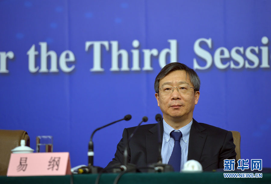 十二屆全國(guó)人大三次會(huì)議新聞中心于3月12日在梅地亞中心多功能廳舉行記者會(huì),邀請(qǐng)中國(guó)人民銀行行長(zhǎng)周小川,中國(guó)人民銀行副行長(zhǎng)、國(guó)家外匯管理局局長(zhǎng)易綱,中國(guó)人民銀行副行長(zhǎng)潘功勝,絲路基金有限責(zé)任公司董事長(zhǎng)金琦就金融改革與發(fā)展回答中外記者提問。圖為中國(guó)人民銀行副行長(zhǎng)、國(guó)家外匯管理局局長(zhǎng)易綱回答記者提問。新華網(wǎng)/中國(guó)政府網(wǎng) 郭小天 攝