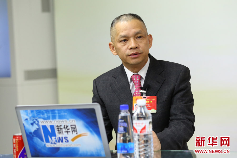 ????2015年3月13日,全國(guó)人大代表、湖南科力遠(yuǎn)新能源股份有限公司董事長(zhǎng)鐘發(fā)平做客新華會(huì)客廳。新華網(wǎng) 李江 攝?