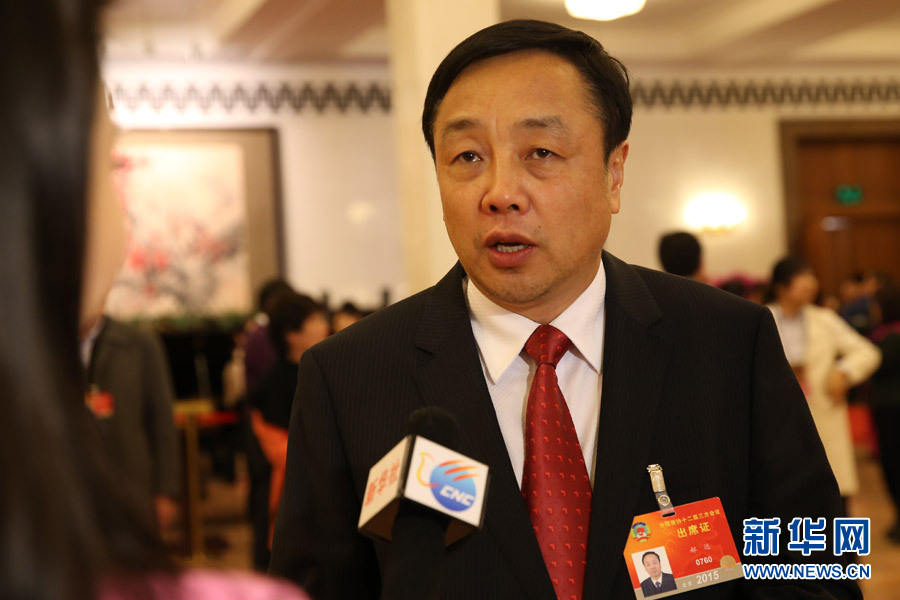 3月13日,全國政協十二屆三次會議在北京人民大會堂舉行閉幕會。圖為政協委員郝遠接受記者采訪。新華網/中國政府網 周柏豫 攝