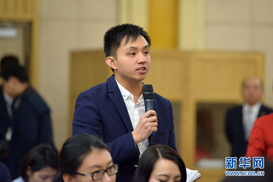????3月13日上午10時,十二屆全國人大三次會議新聞中心邀請四川大學(xué)校長謝和平、江蘇省教育廳廳長沈健、廣東省教育廳廳長羅偉其、海南大學(xué)校長李建保、貴州大學(xué)校長鄭強(qiáng)就完善高等教育治理結(jié)構(gòu)的相關(guān)問題回答中外記者提問。圖為貴州廣播電視臺記者提問。新華網(wǎng)/中國政府網(wǎng) 郭小天 攝