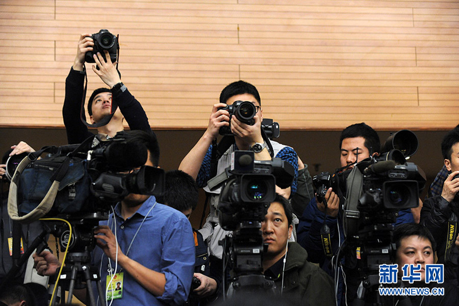 十二屆全國人大四次會議新聞中心于3月8日(星期二)10時在梅地亞中心多功能廳舉行記者會,邀請外交部部長王毅就“中國的外交政策和對外關系”的相關問題回答中外記者的提問。圖為現場記者緊張地工作。新華網/中國政府網記者 陳競超攝