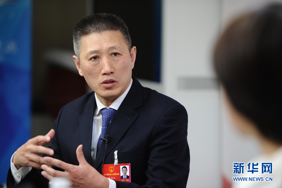 ??? 2016年3月13日,全國人大代表,煙臺張裕葡萄釀酒股份有限公司總經理周洪江做客新華網兩會訪談。圖為周洪江在訪談現場。新華網 盧志佳 攝