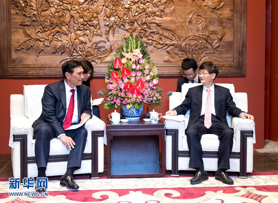 6月15日,中共中央政治局委員、中央政法委書記孟建柱在北京會見印尼總統特使、海洋統籌部長盧胡特。 ? 新華社記者 丁海濤攝