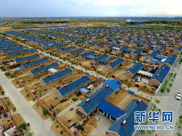 涇興村全貌照片(2017年6月21攝)。涇興村是位于寧夏回族自治區靈武市白土崗鄉的純移民新村,村民593戶2692人系2015年從寧夏涇源縣7個鄉鎮21個行政村搬遷而來。該村目前共有建檔立卡戶239戶1180人,扶貧脫貧任務艱巨。當地政府根據該村情況,通過土地流轉,引進大型養殖企業;密切與企業合作,在村中建立“扶貧車間”;依托實力雄厚企業,促成企業與貧困戶結對幫扶等方式,逐步實現貧困戶脫貧致富。新華社發