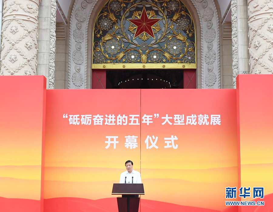 9月25日,“砥礪奮進的五年”大型成就展開幕式在北京展覽館舉行。中共中央政治局常委、中央書記處書記劉云山發表講話并宣布展覽開幕。新華社記者張鐸攝