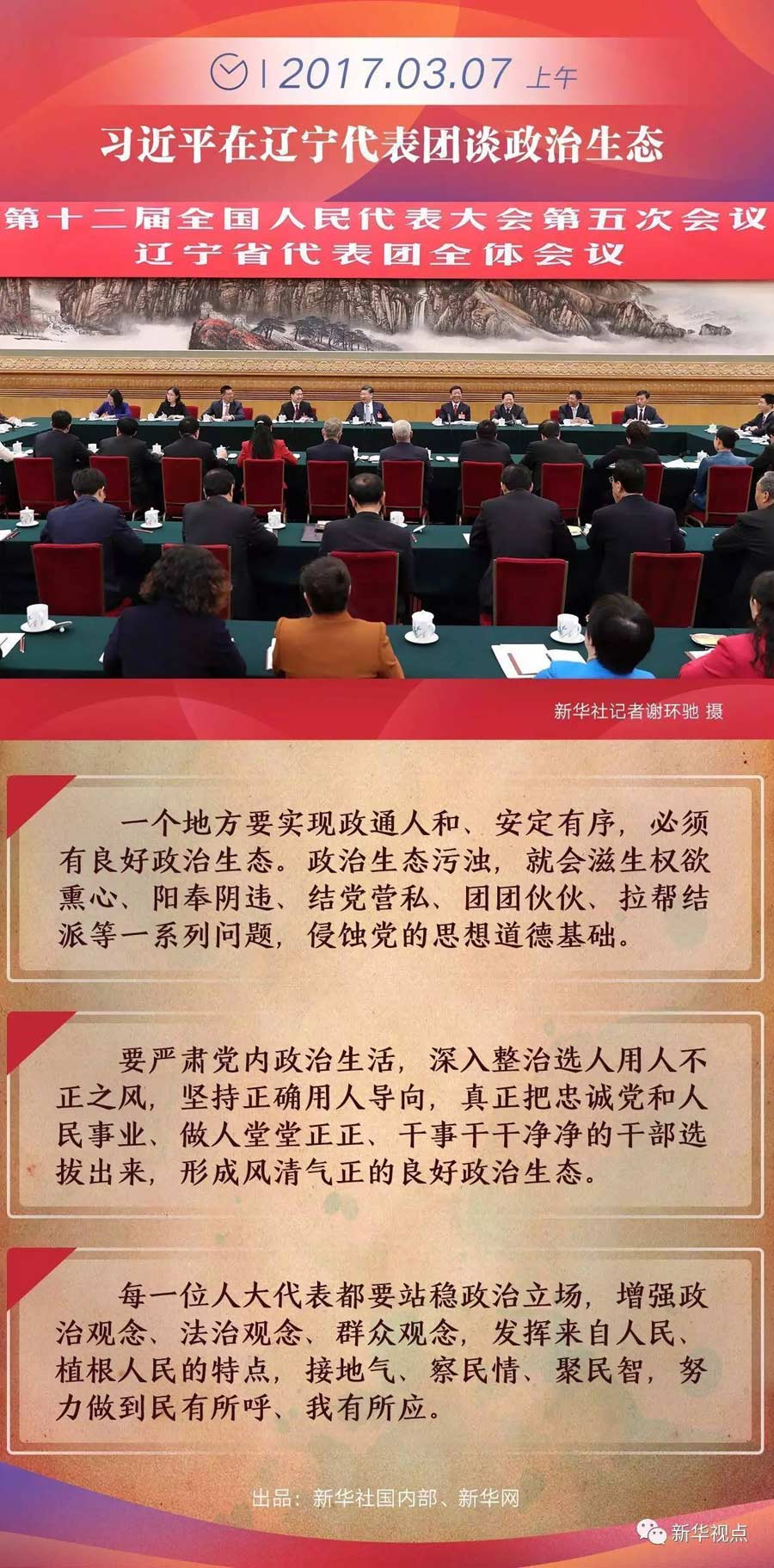 政治生態是東北振興的一大關鍵。習近平在審議中說,一個地方要實現政通人和、安定有序,必須有良好政治生態。政治生態污濁,就會滋生權欲熏心、陽奉陰違、結黨營私、團團伙伙、拉幫結派等一系列問題,侵蝕黨的思想道德基礎。