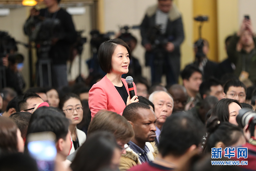 十二屆全國人大五次會議新聞中心于3月8日(星期三)10時在梅地亞中心多功能廳舉行記者會,邀請外交部部長王毅就“中國的外交政策和對外關系”的相關問題回答中外記者的提問。圖為鳳凰衛視記者提問。新華網/中國政府網 翟子赫 攝