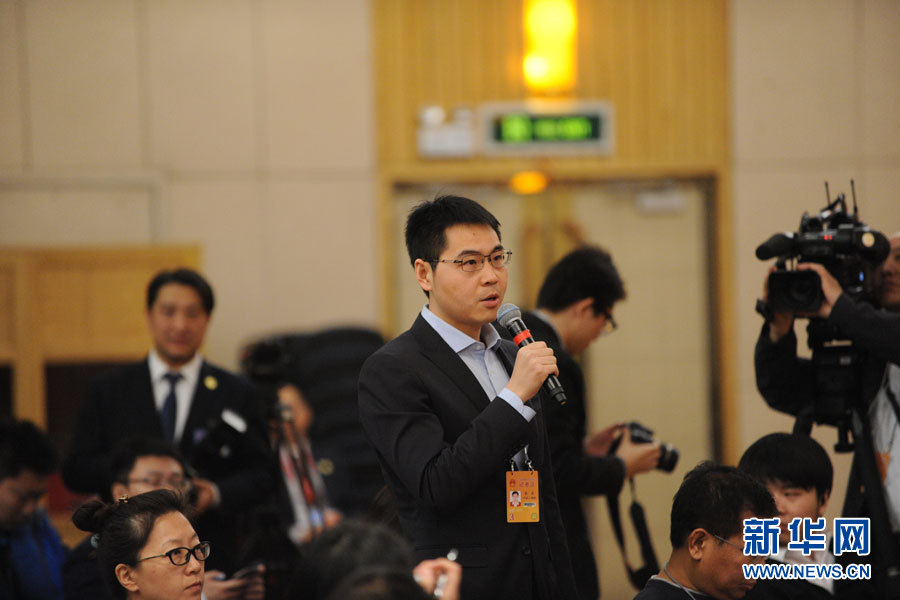 3月10日,十二屆全國人大五次會議新聞中心舉行記者會,邀請國家工商行政管理總局局長張茅就“深化商事制度改革”的相關問題回答中外記者的提問。圖為中國工商報記者提問。新華網/中國政府網 王健 攝