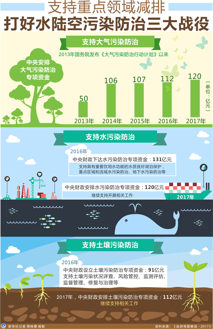 圖表:支持重點領域減排 打好水陸空污染防治三大戰役 新華社記者 周詠緡 編制