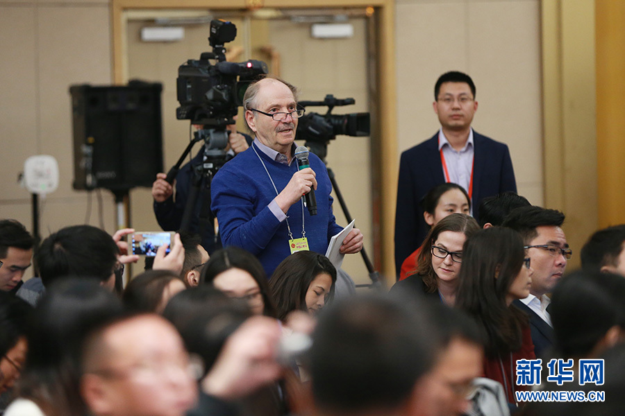 3月11日,十二屆全國人大五次會議新聞中心舉行記者會,邀請工業(yè)和信息化部部長苗圩、副部長辛國斌和總工程師、新聞發(fā)言人張峰就“推進(jìn)實(shí)施‘中國制造2025’”的相關(guān)問題回答中外記者的提問。圖為德國世界報(bào)記者提問。新華網(wǎng)/中國政府網(wǎng) 傅義洲 攝