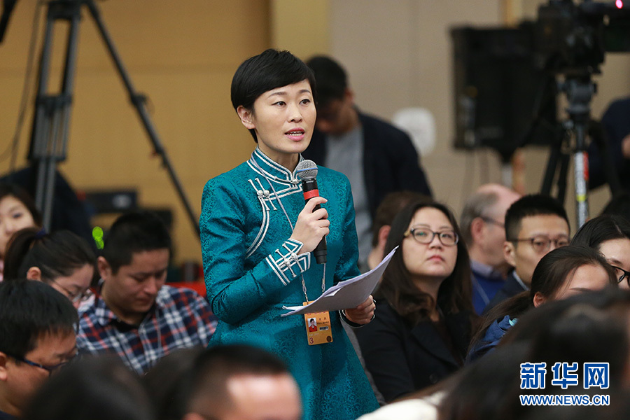3月11日,十二屆全國人大五次會議新聞中心舉行記者會,邀請工業和信息化部部長苗圩、副部長辛國斌和總工程師、新聞發言人張峰就“推進實施‘中國制造2025’”的相關問題回答中外記者的提問。圖為內蒙古廣播電視臺記者提問。新華網/中國政府網 傅義洲 攝