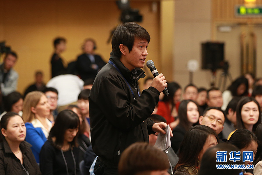 3月12日,十二屆全國人大五次會議新聞中心舉行記者會,邀請教育部部長陳寶生就“教育改革發展”的相關問題回答中外記者的提問。圖為湖北日報記者提問。新華網/中國政府網 傅義洲 攝