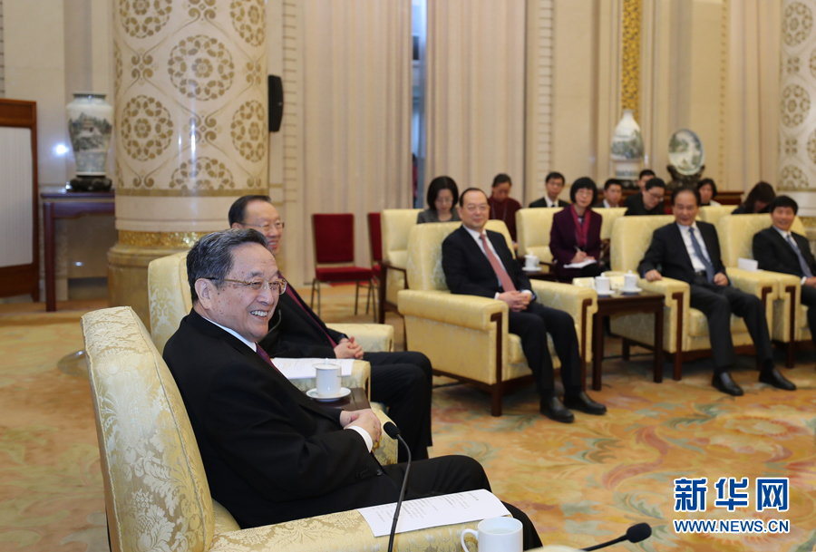 ?? 3月13日,中共中央政治局常委、全國政協主席俞正聲在北京人民大會堂看望參加全國政協十二屆五次會議新聞報道工作的中央主要新聞媒體負責同志和記者代表,向參加大會報道的新聞工作者表示誠摯慰問和衷心感謝。新華社記者 鞠鵬 攝