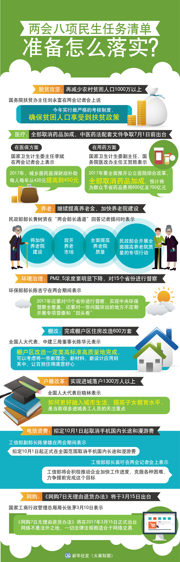 圖表:兩會八項民生任務清單準備怎么落實? 新華社發 大巢制圖