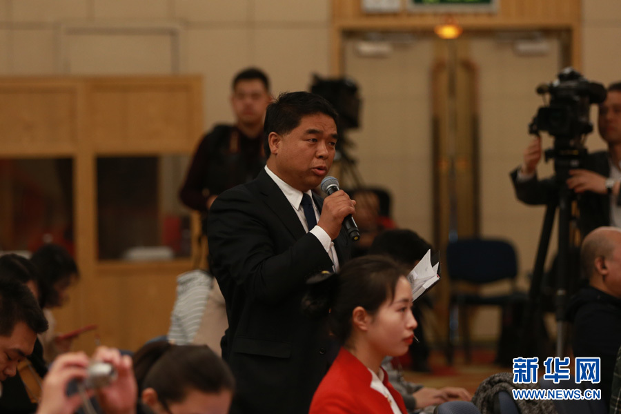 3月14日,十二屆全國人大五次會議新聞中心舉行記者會,邀請國家質檢總局局長支樹平、副局長兼國家認證認可監督管理委員會主任孫大偉、國家標準化管理委員會主任田世宏就“質量提升”的相關問題回答中外記者的提問。圖為消費日報記者提問。新華網/中國政府網 傅義洲 攝