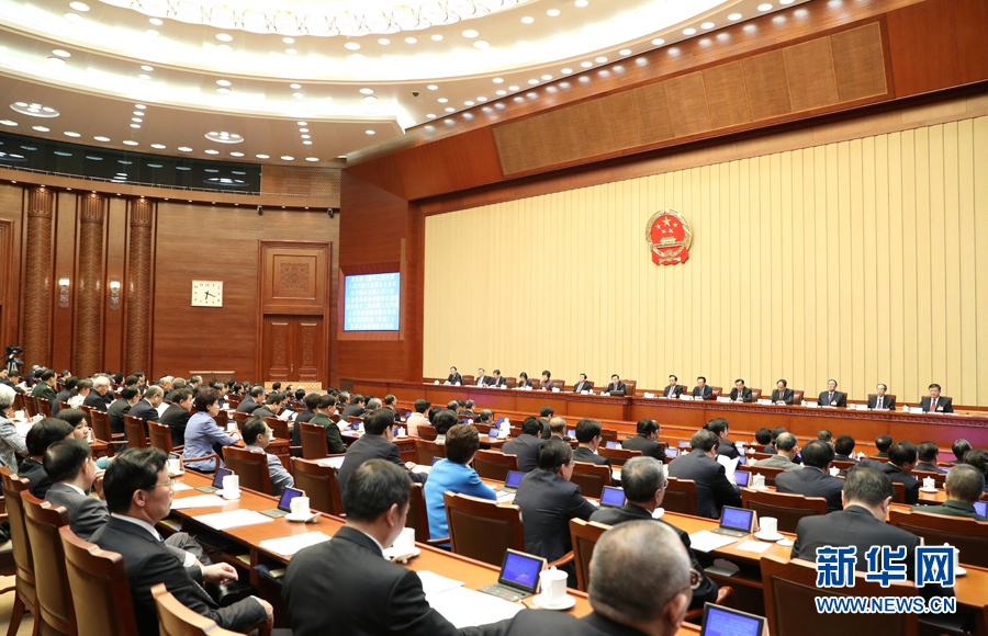 3月14日下午,十二屆全國人大五次會議主席團在北京人民大會堂舉行第四次會議。主席團常務主席張德江主持會議。 新華社記者 馬占成 攝