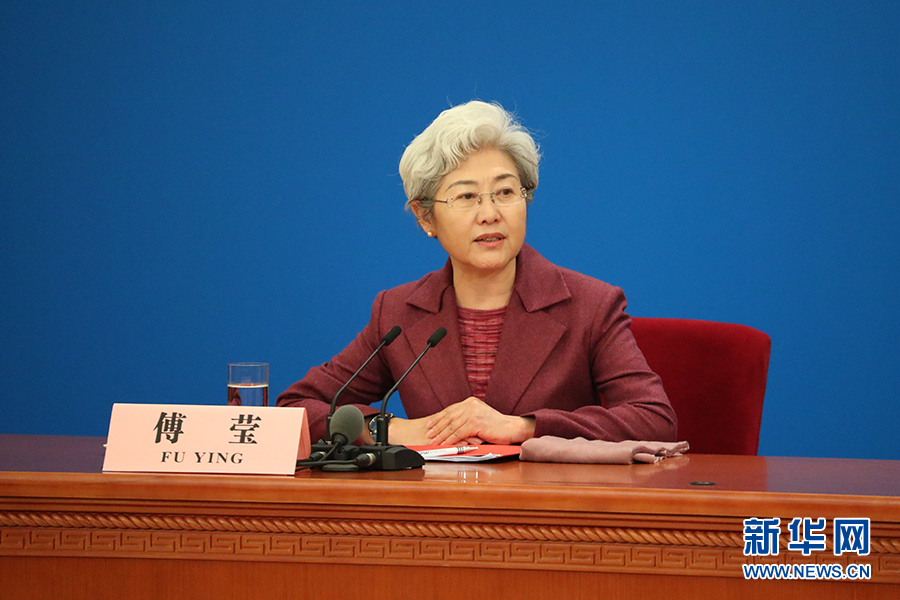 3月15日上午,國(guó)務(wù)院總理李克強(qiáng)在人民大會(huì)堂三樓金色大廳會(huì)見采訪十二屆全國(guó)人大五次會(huì)議的中外記者并回答記者提出的問題。圖為記者會(huì)主持人傅瑩。新華網(wǎng)/中國(guó)政府網(wǎng) 翟子赫 攝